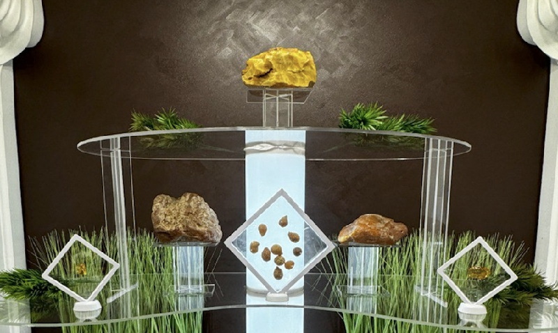 Участники предпоказа не только из России, но и из других стран смогли вживую увидеть и подержать в руках редкие виды солнечного камня: самородки весом более килограмма, инклюзы с включениями флоры и фауны, а также каплевидный янтарь. Все образцы сформировала сама природа десятки миллионов лет назад. Камни добыты Янтарным комбинатом в Приморском карьере Калининградской области за последние 13 лет.